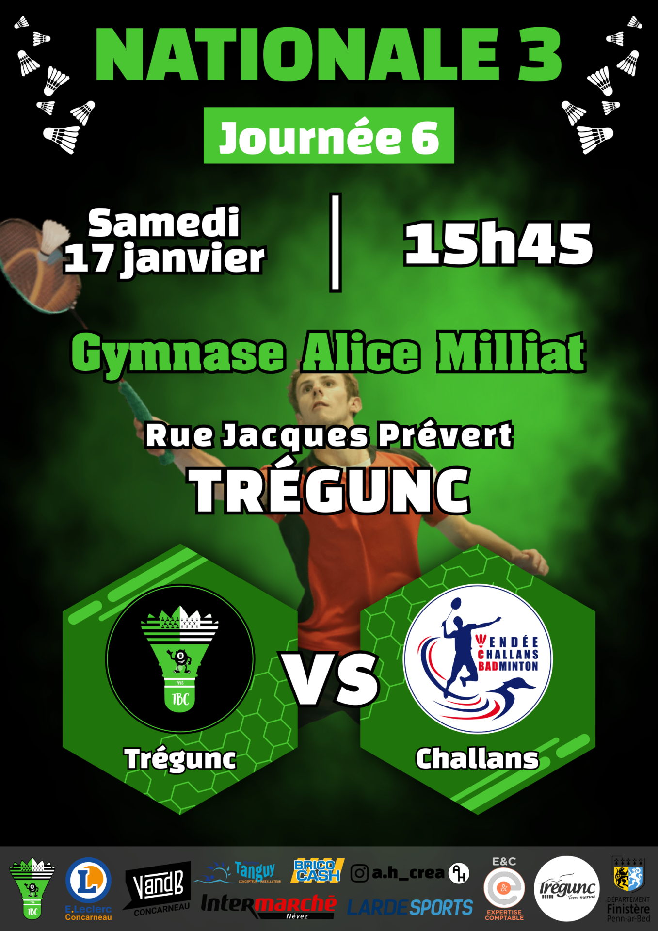 - Samedi 17 janvier :J6 Nationale 3 TBC vs CHALLANS