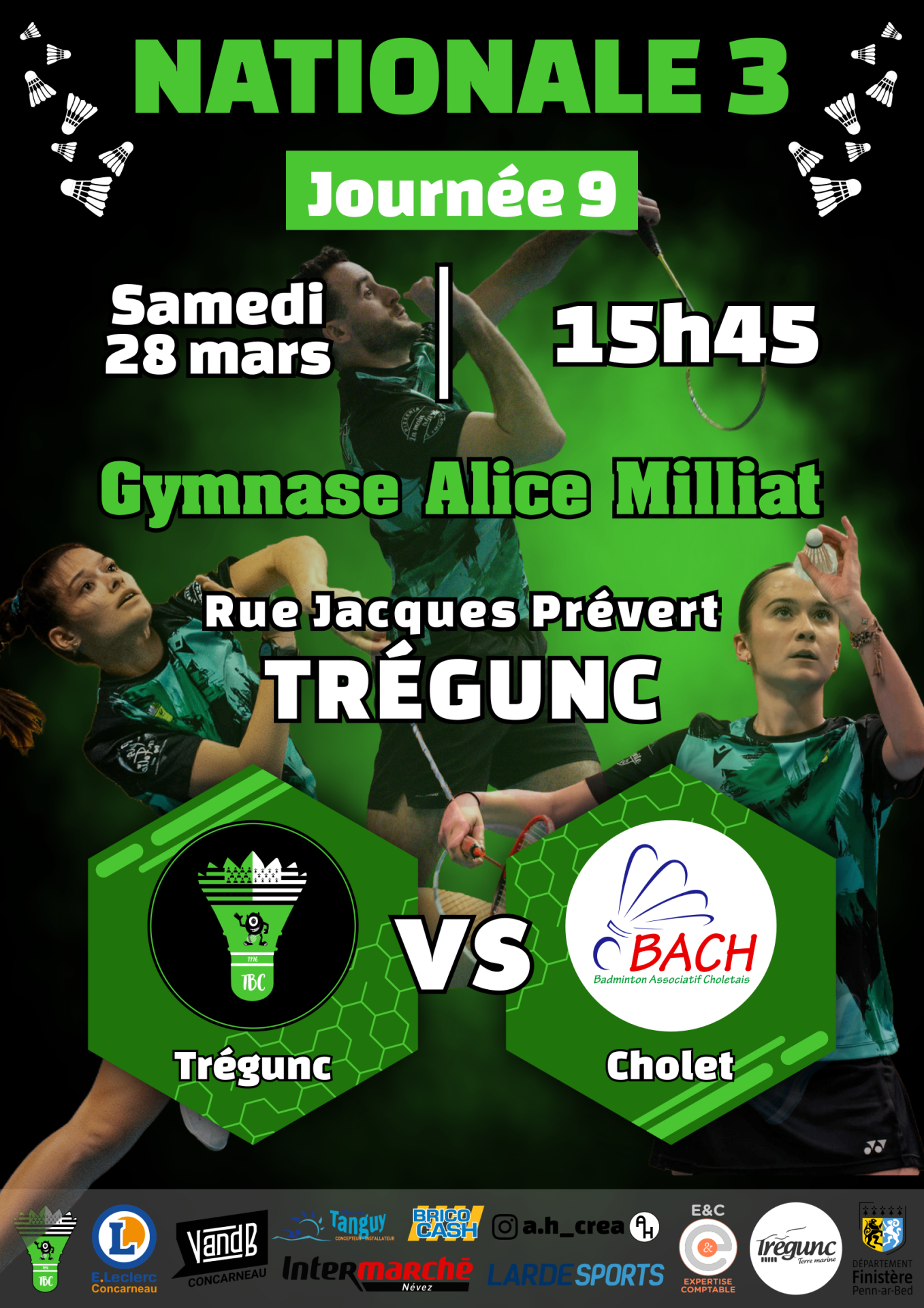 - samedi 28 mars : J9 Nationale 3 à Trégunc = soirée blind test